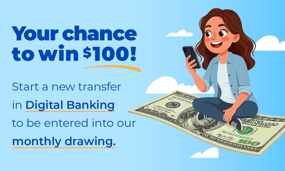 We're giving away $100 to one lucky winner each month through June!* Whether you're saving for something big or just getting started, setting up a Savings Goal in Online Banking makes it easier to build healthy savings habits and gives you a chance to win $100.